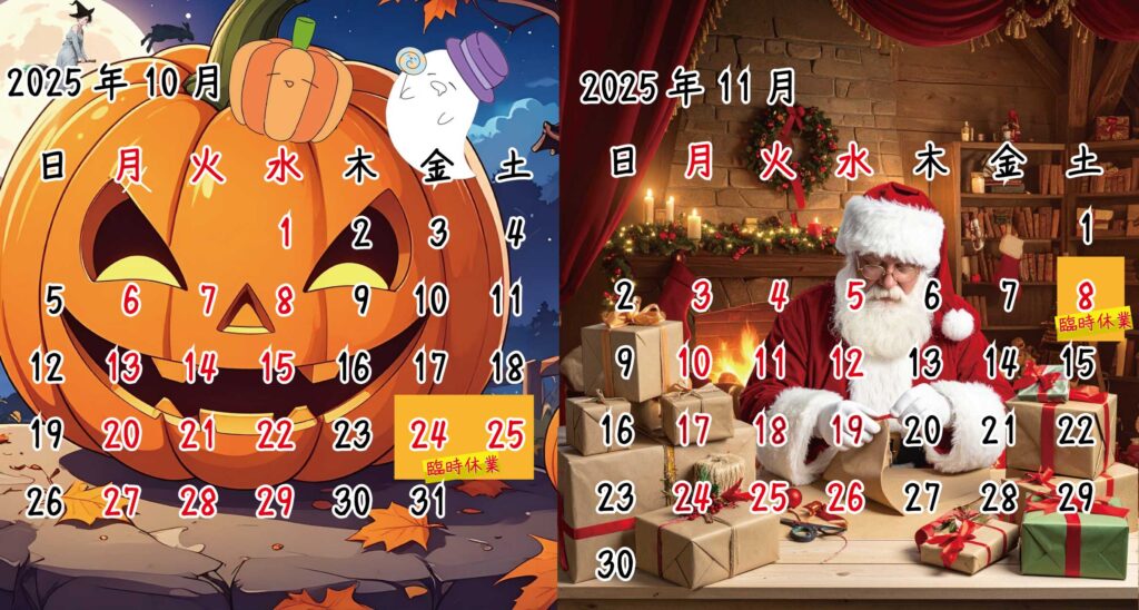 10月11月のカレンダーを更新しました。<2025/ 10/1>