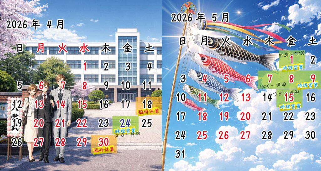 2026年4月、5月のカレンダーを更新しました。<2026/ 4/6>